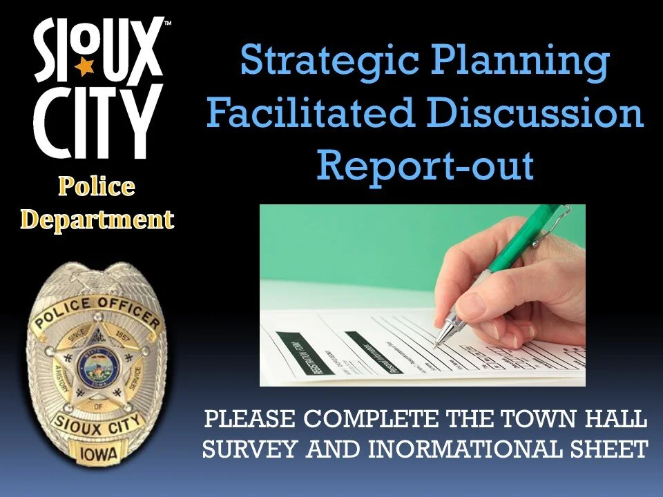 If you watched it live, watched the recording, or just look at the slide, please complete the questionnaire. This brief questionnaire will help guide our strategic plan and also let us know about any problems you would like to you report. www.siouxcitypolice.com/town-hall